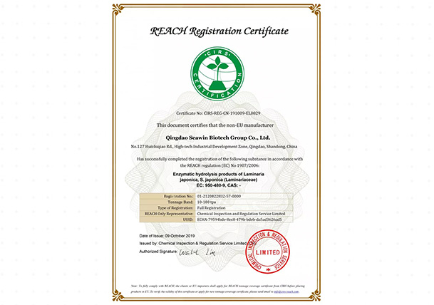 Reach海带提取物全球领头注册人