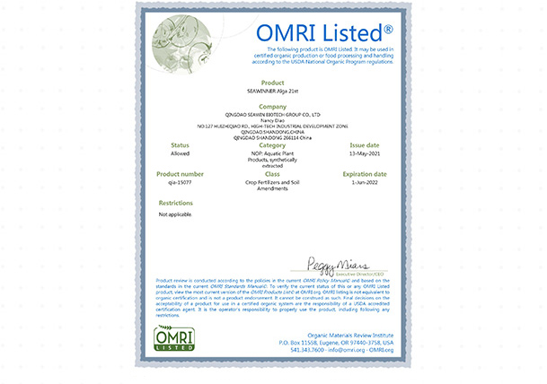 美国OMRI有机认证证书