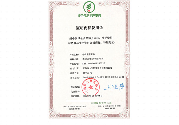 证明商标使用证(绿色食品生产资料)