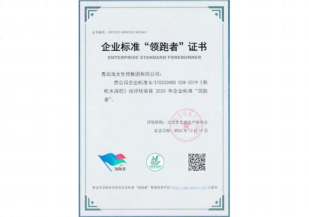 企业标准"领跑者"证书