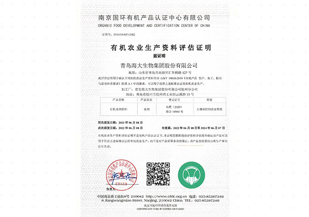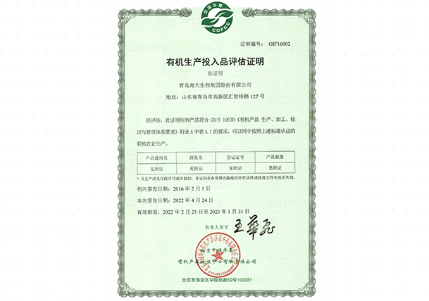 有机农业生产资料评估证明